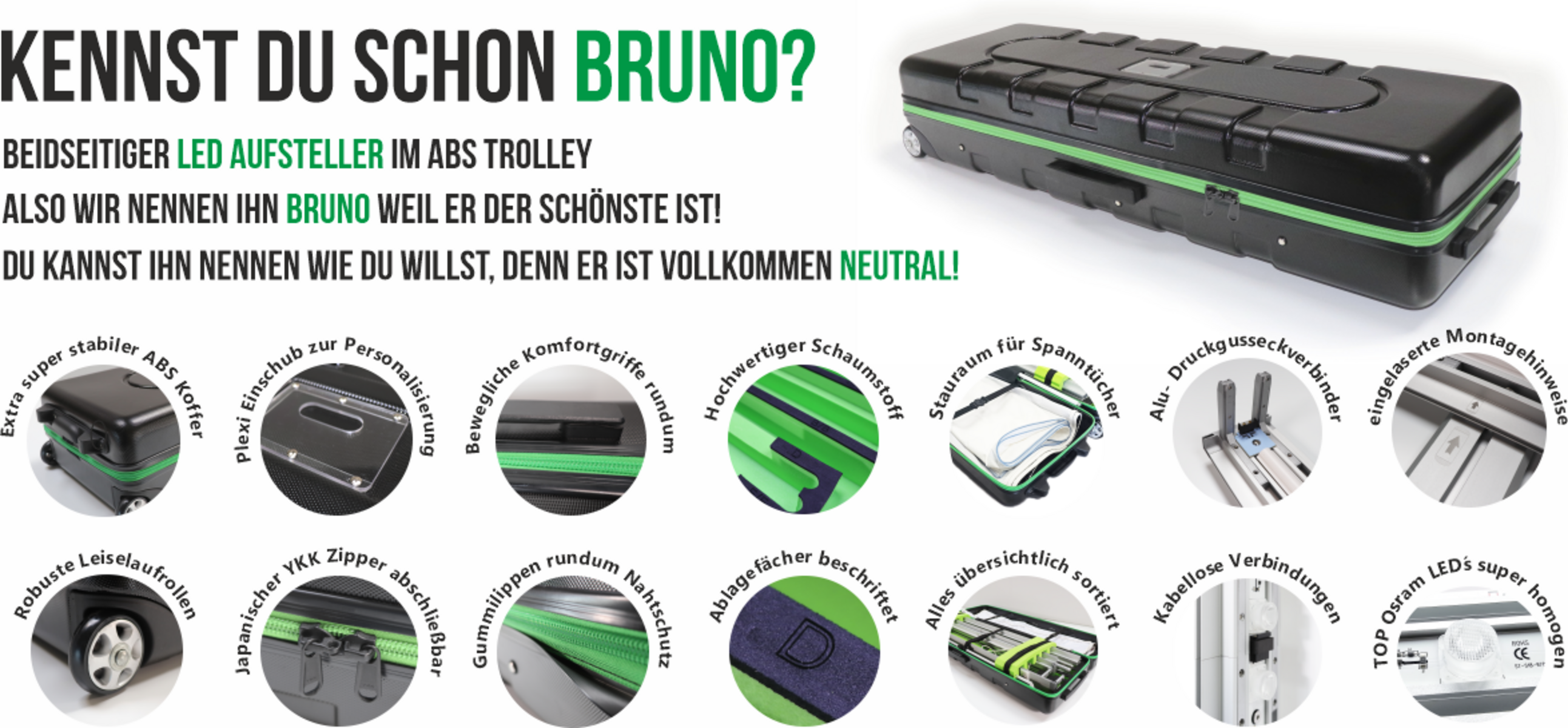 Professionell, durchdacht und zuverlässig – der BRUNO setzt neue Maßstäbe im Bereich LED-Aufsteller.