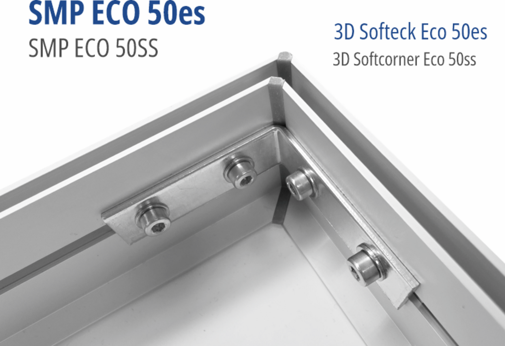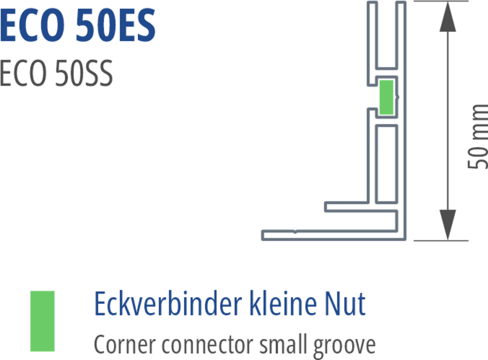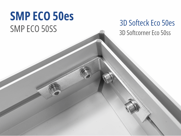 Systemkompatibilität über Eckset Eco 50es für rechtwinklige Rahmen. Nicht kompatibel mit doppelseitigen Eckverbindern oder Outdoor-Zubehör der Eco-Serie.