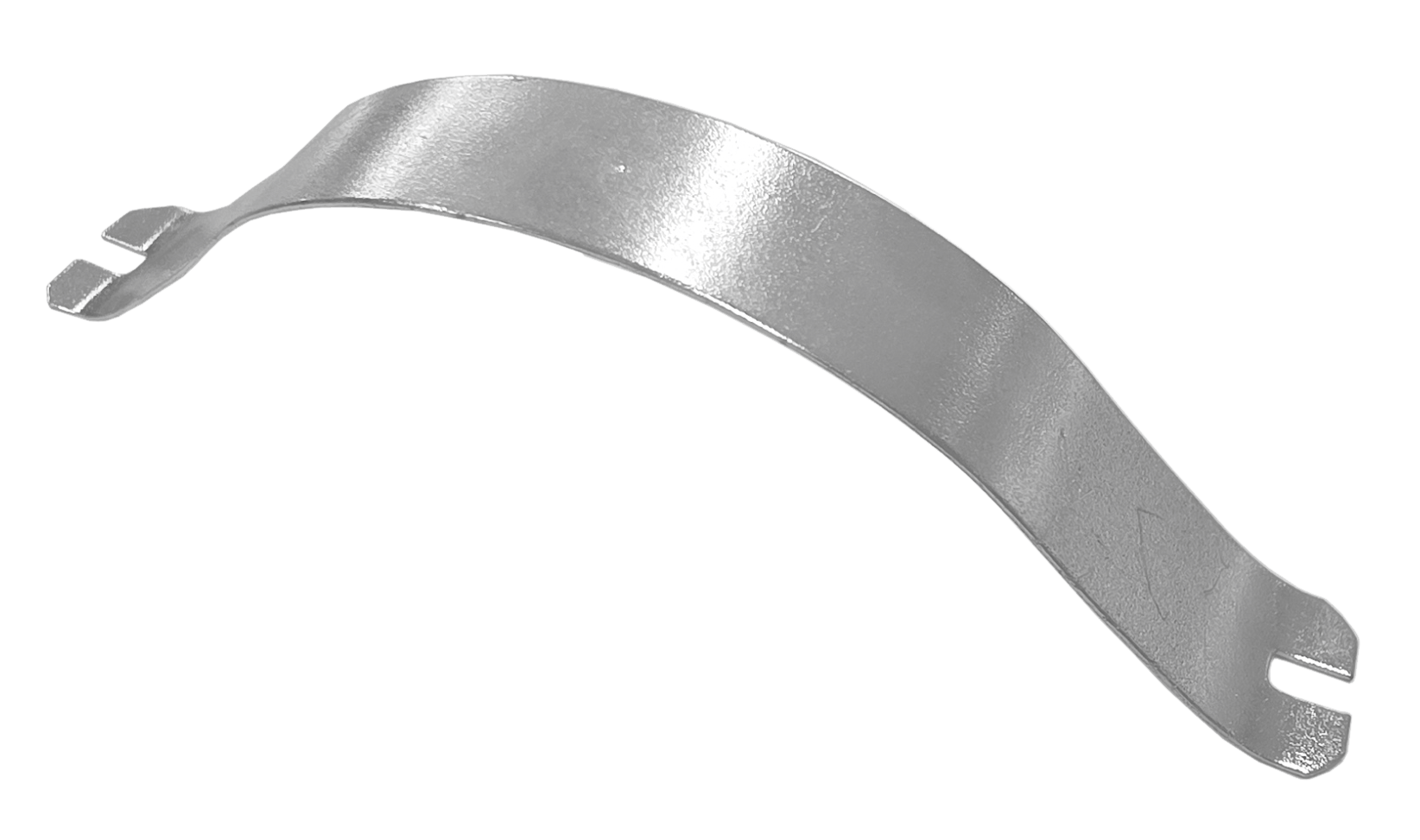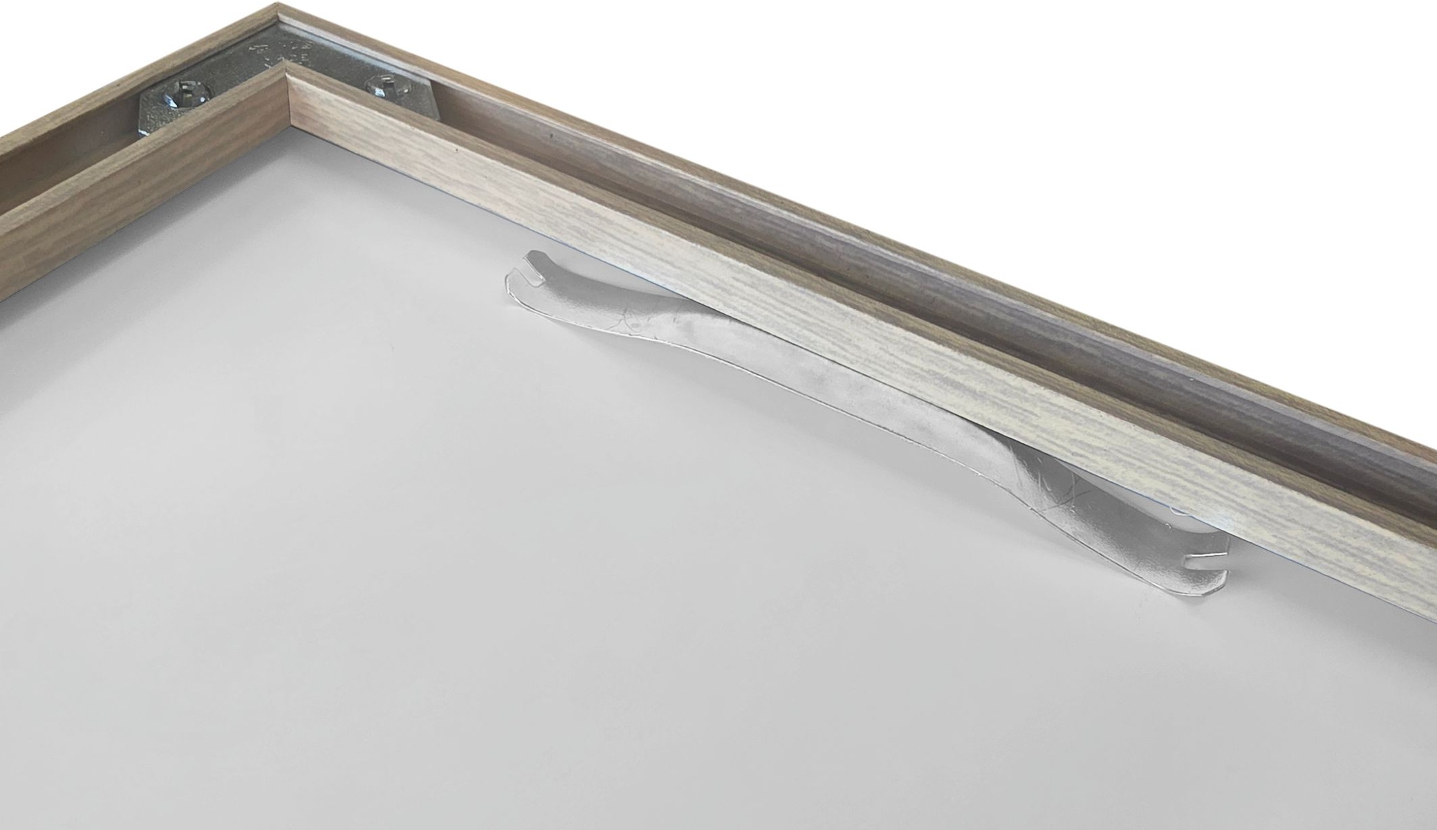 Die Stahlfeder wird auf der Rückseite zwischen Plattenmaterial und Profil eingesetzt und drückt das Material unabhängig von der Plattenstärke nach vorne.